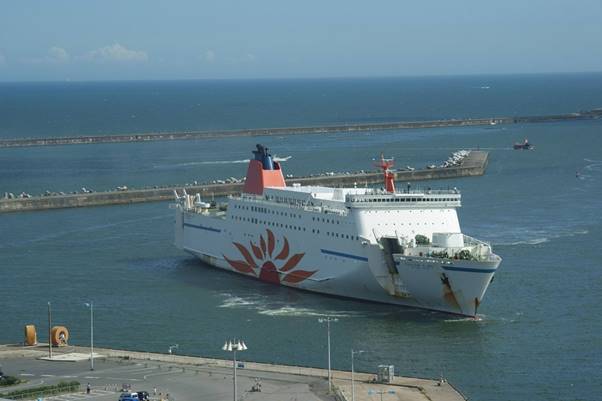 大洗港と北海道の苫小牧西港の間を運航しており、夕方便と深夜便があります。夕方便のダイヤを調べておくと、姿を観ることができるでしょう。